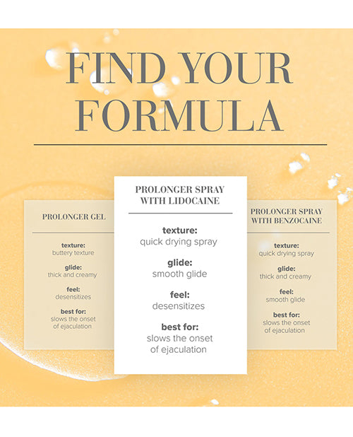 Sản phẩm xịt trì hoãn xuất tinh nam sở hữu liều lượng Lidocaine 10% tối đa, được FDA phê duyệt – đảm bảo an toàn và tác dụng chỉ trong vài phút. Chai xịt định lượng 2 fl oz (60 mL) tiện lợi, dễ mang theo, không lem nhem nhờ công thức gốc nước. Không chứa glycerin hay propylene glycol, tương thích hoàn hảo với bao cao su latex, polyisoprene (không dùng với polyurethane). ⏱️