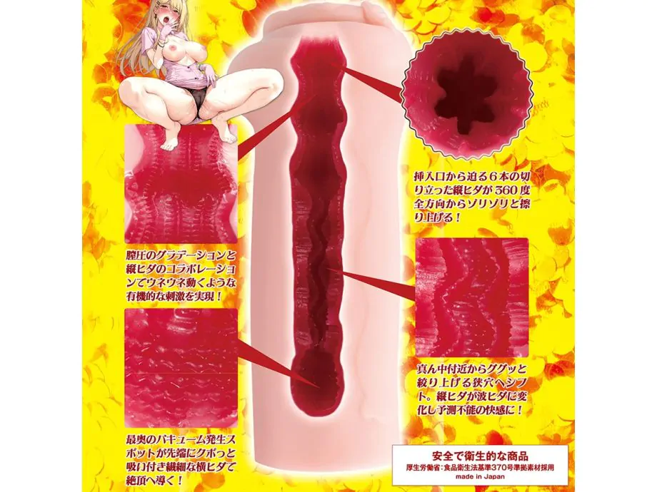 Đường hầm bên trong tinh xảo với nếp gấp, nút thắt đa tầng, tạo khoái cảm dồn dập. Kèm gel bôi trơn gốc nước, chỉ rửa nước ấm là sẵn sàng. Đây là onahole handheld hoàn hảo cho fan anime, nâng tầm trải nghiệm tình dục nam mà không cần đối tác.