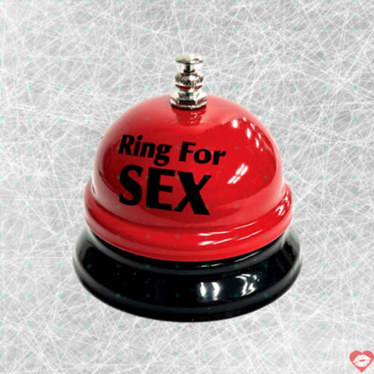 Thiết kế cổ điển đỉnh cao 🎀: Hình dáng chuông bàn truyền thống, màu đỏ chói mắt, chữ "Ring for Sex" in đen đậm nét – nhận diện ngay lập tức, thêm phần gợi cảm.
