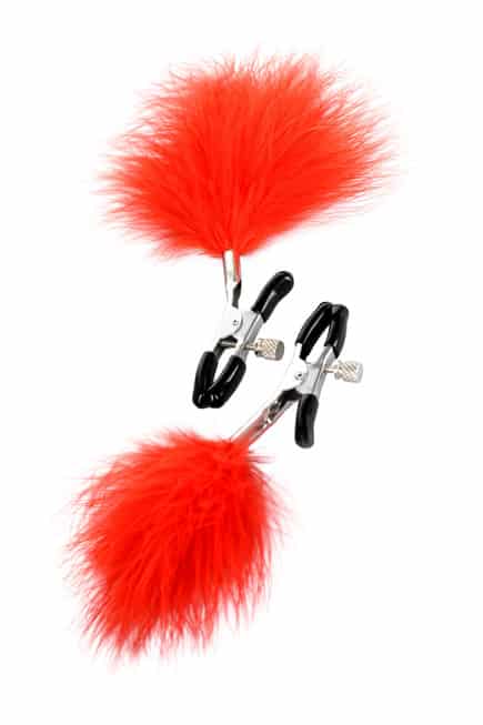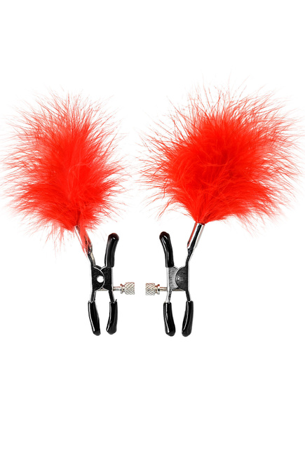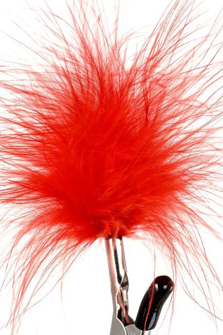 Kẹp vú BDSM lông đỏ Toyfa không chỉ siết chặt núm vú mà còn dùng lông vũ đỏ chạm khẽ lên ngực, tạo cảm giác ngứa ngáy kích thích tột độ. Lực kẹp điều chỉnh linh hoạt qua vít nhỏ, từ dịu nhẹ đến mạnh mẽ tùy nhịp độ. Nắp silicone bảo vệ da êm ái, tránh trầy xước – an toàn cho mọi loại da nhạy cảm!