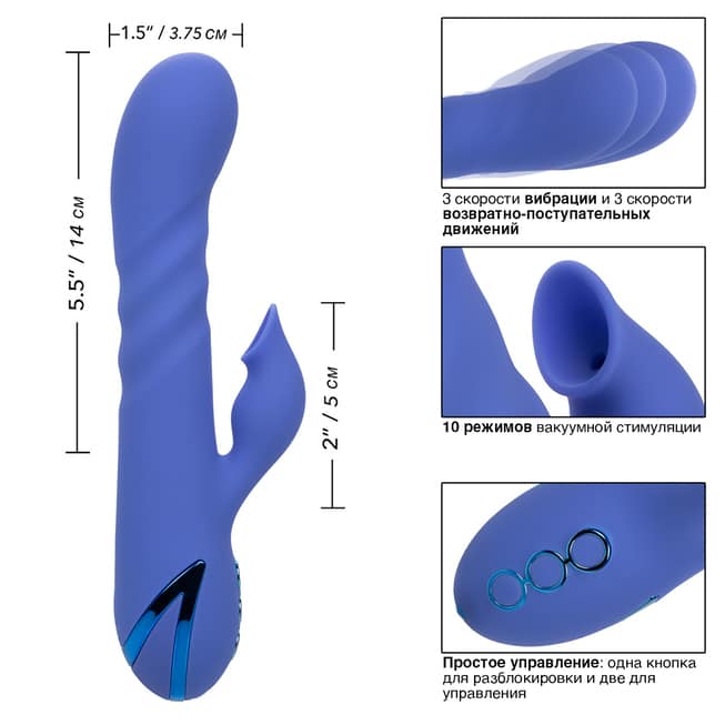 Khám phá vibrators thỏ hút chân không đỉnh cao từ CalExotics, thương hiệu Mỹ uy tín với sản xuất tinh xảo. Sản phẩm sử dụng silicone y tế cao cấp siêu mềm mịn, an toàn cho da nhạy cảm nhất. Thiết kế cong gợi cảm dài 14cm đánh thức mọi giác quan, mang đến kích thích âm đạo và âm vật mãnh liệt, giúp bạn chạm đỉnh nhanh chóng và kéo dài niềm vui. 😍