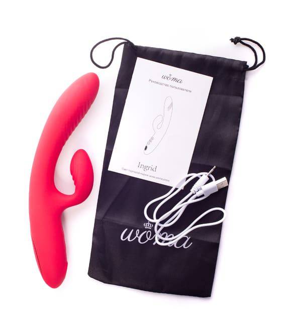 Bộ sản phẩm đầy đủ: Woma Ingrid, cáp USB sạc, túi đựng và hướng dẫn. Pin bền bỉ, sẵn sàng cho mọi cuộc vui thăng hoa! 🔋