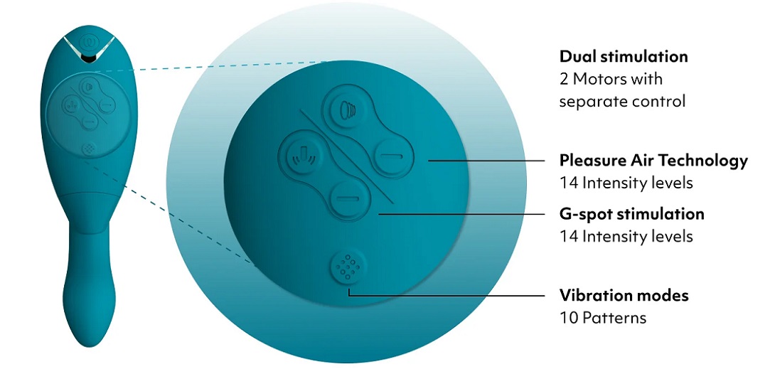 Womanizer DUO 2 chinh phục hàng ngàn phụ nữ nhờ kích thích đôi đồng thời: hút dịu dàng âm vật bằng khí áp và rung mạnh mẽ điểm G. Hai động cơ độc lập cho phép tùy chỉnh riêng, tạo sóng khoái lạc chân thực. Công nghệ Pleasure Air tránh kích thích quá mức, mang cảm giác tự nhiên như thật.